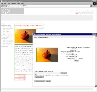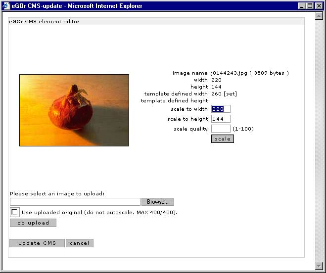 Schritt 3:Benutzen Sie den Browse ...-Button, um ein Bild von Ihrer Festplatte für den Upload in das CMS-System auszuwählen. Danach klicken Sie auf do upload - schon haben Sie Ihr Bild in das CMS-System integriert.