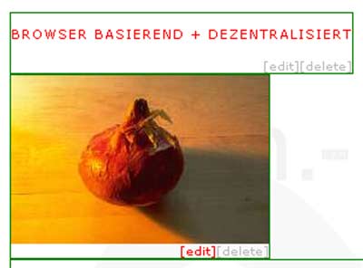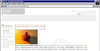 Die CMS SoftwareNach dem Login erscheinen die editierbaren CMS-Bereiche - mit farbigen Rahmen markiert.