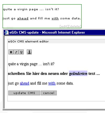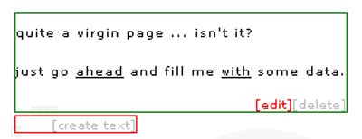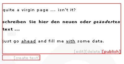 2. Der TEXT-EditorSchritt 1:Klicken Sie auf den [edit]-Link oder - bei leeren Inhalten - auf den entsprechenden [create text]-Link um den Text-Editor zu öffnen. |